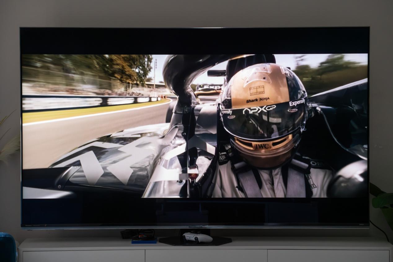而在播放「F1:狂飙飞车」时,即便是暗场景(如赛道隧道内的灯光照射),也能做到 「亮部(车灯)不刺眼、暗部(隧道阴影)有细节」,赛道边缘的防护栏纹理依然清晰可见,这得益于其千万级动态对比度,让高速运动中的复杂光影场景还原更接近人眼真实视觉。