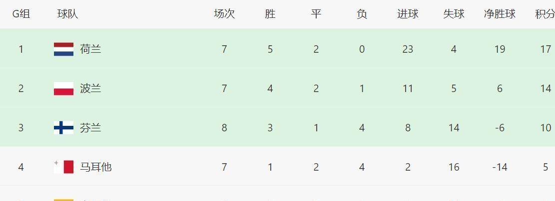 现在荷兰队积17分,领先波兰3分,净胜球多13个。 这意味着最后一轮他们主场打平就能出线,而波兰不仅要赢,还要指望荷兰输球,同时自己得刷够净胜球。 但看看波兰队最近3个客场1平2负的战绩,这样的逆转概率堪比中彩票。