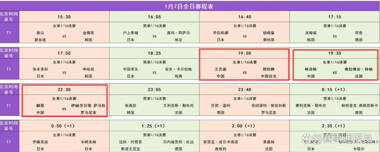 在外协会的比赛中,几场焦点对决同样吸睛。 下午4点40分,日本核心早田希娜对阵摩纳哥的杨晓欣,这场比赛的胜者将在下一轮直面蒯曼。 下午5点50分,日韩新生代领军人物的对决,张本美和迎战申裕斌,胜者很可能在后续对阵国乒的陈幸同。 次日凌晨0点50分,则是一场日本内战,伊藤美诚对阵长崎美柚,这场比赛的胜者有望在四分之一决赛与蒯曼相遇。