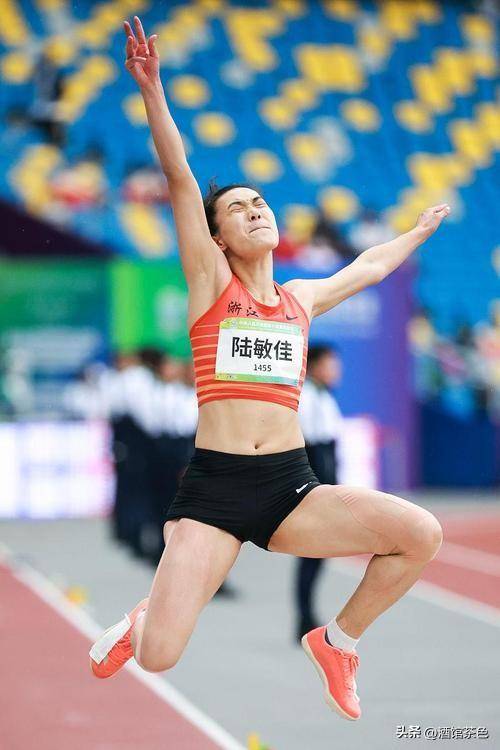 1990年出生的她,在跳远赛道上天赋异禀,2008年在北京奥运会选拔赛中,陆敏佳跳出了6米44的好成绩。